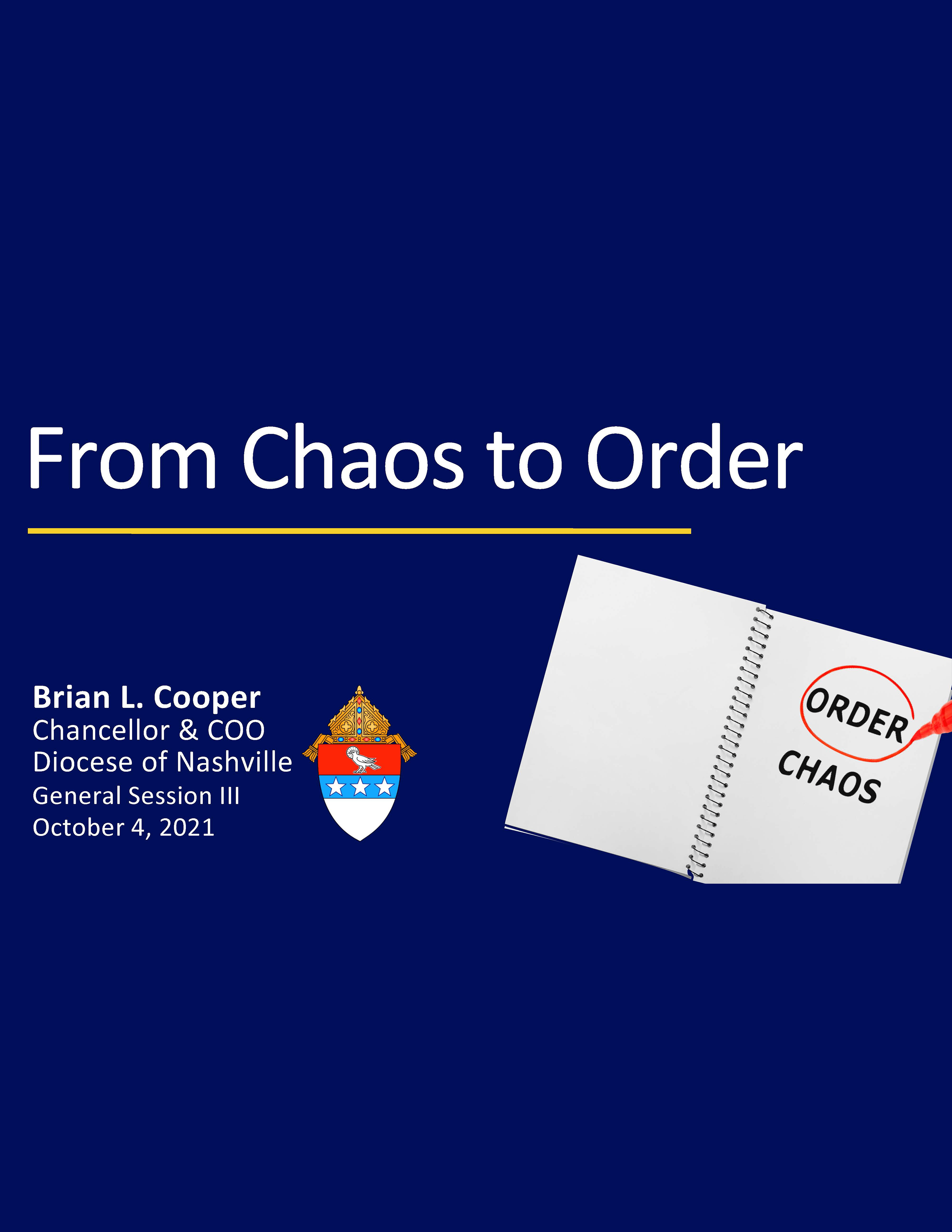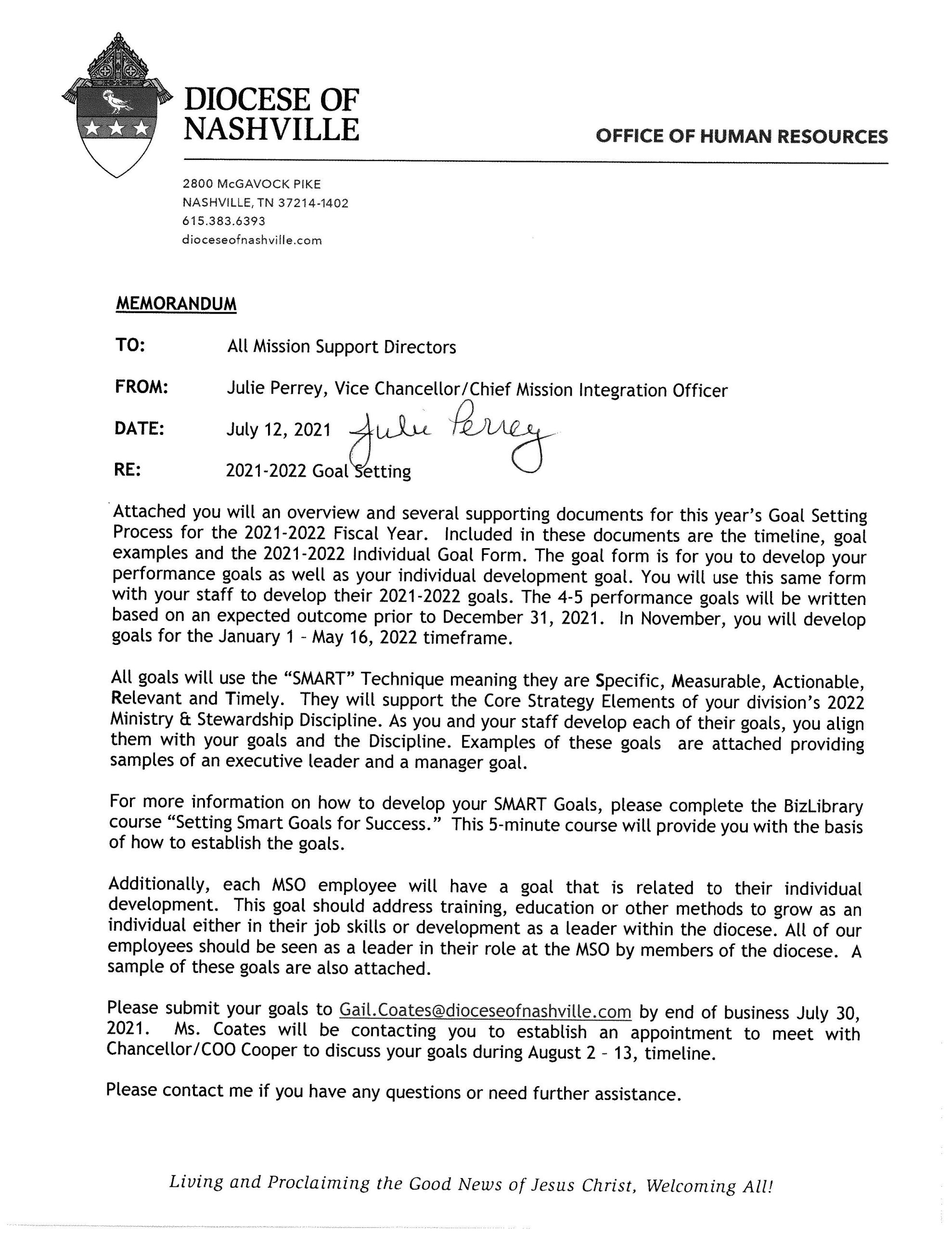 Diocese of Nashville; Living and Proclaiming the Good News of Jesus Christ, Welcoming All! Goal Setting Process Annual Priorities Pyramid Monthly Impact Report DFMC Presentation From Chaos to Order Sample Ministry Plans Annual Ministry Plan Template